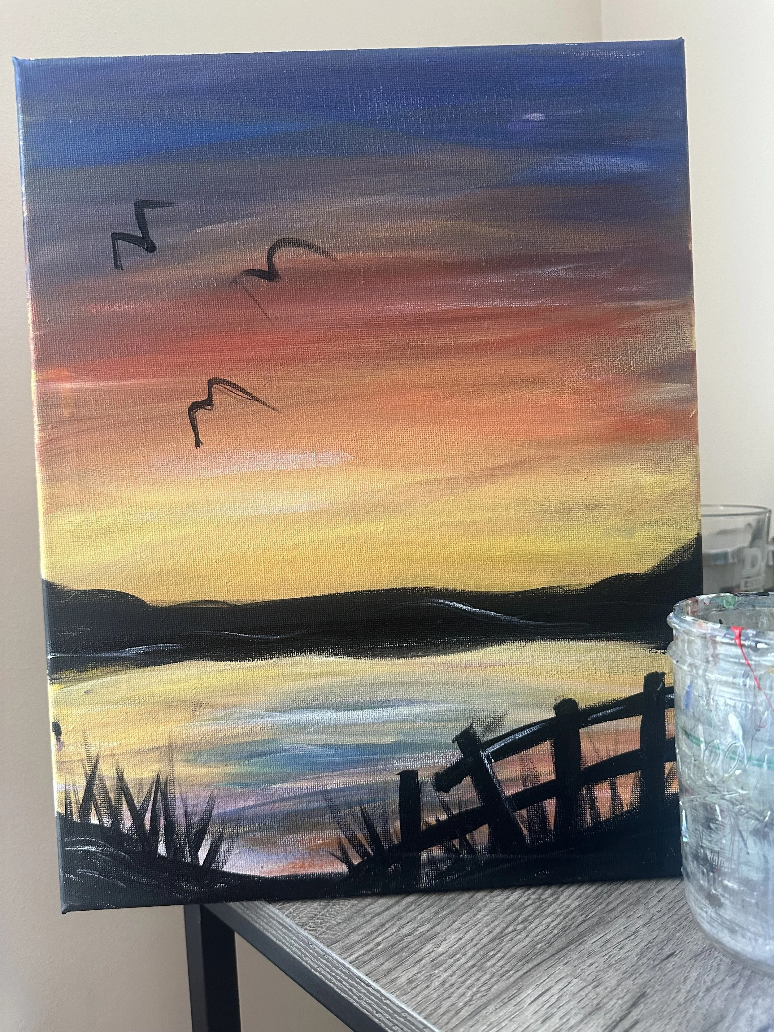 Amanda of Carretta Colors is hosting a fun canvas paint workshop at the Bird & Bear Barn! Amanda will guide you step by step on how to paint a beautiful summer sunset portrait (see sample below)!